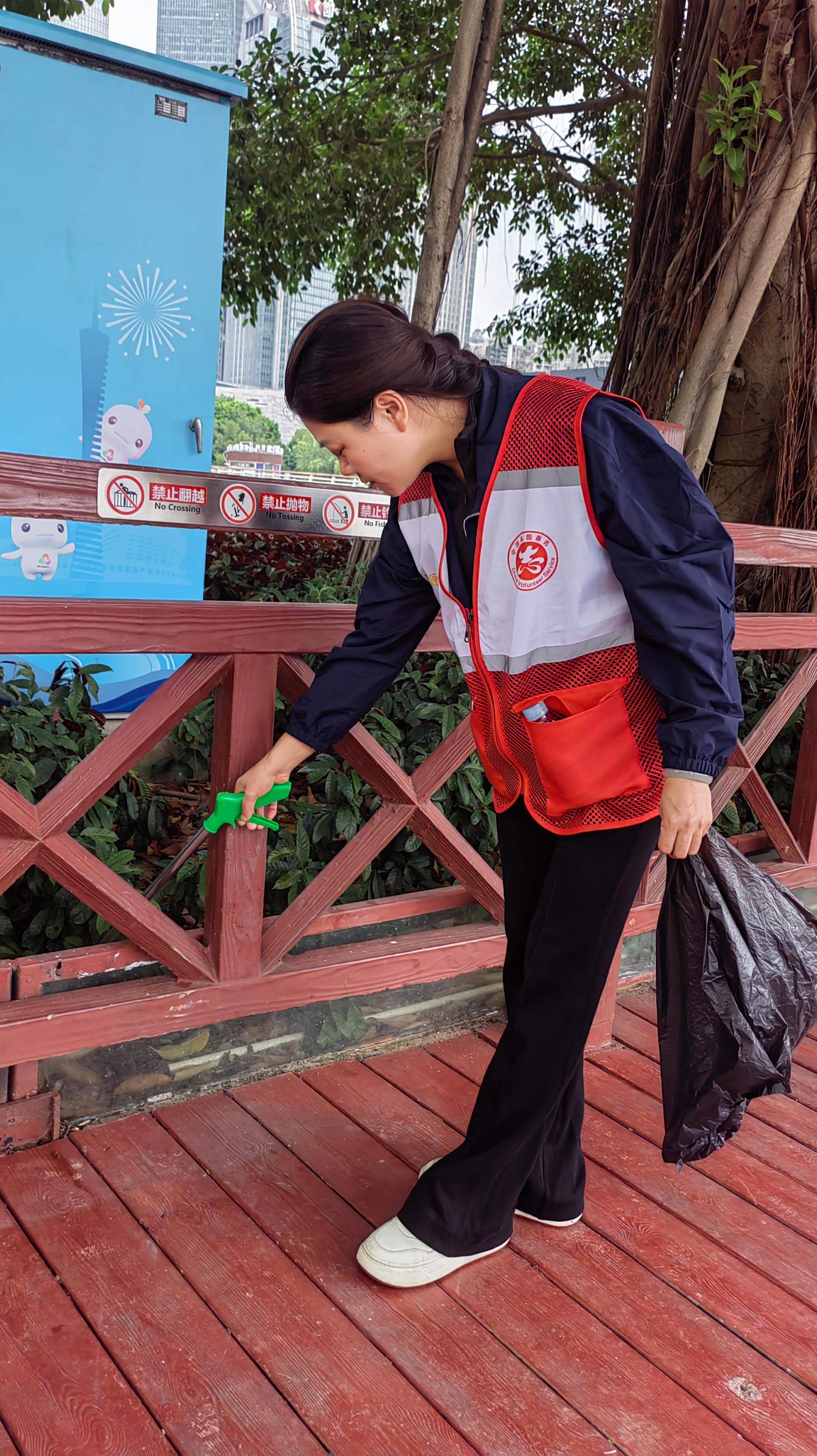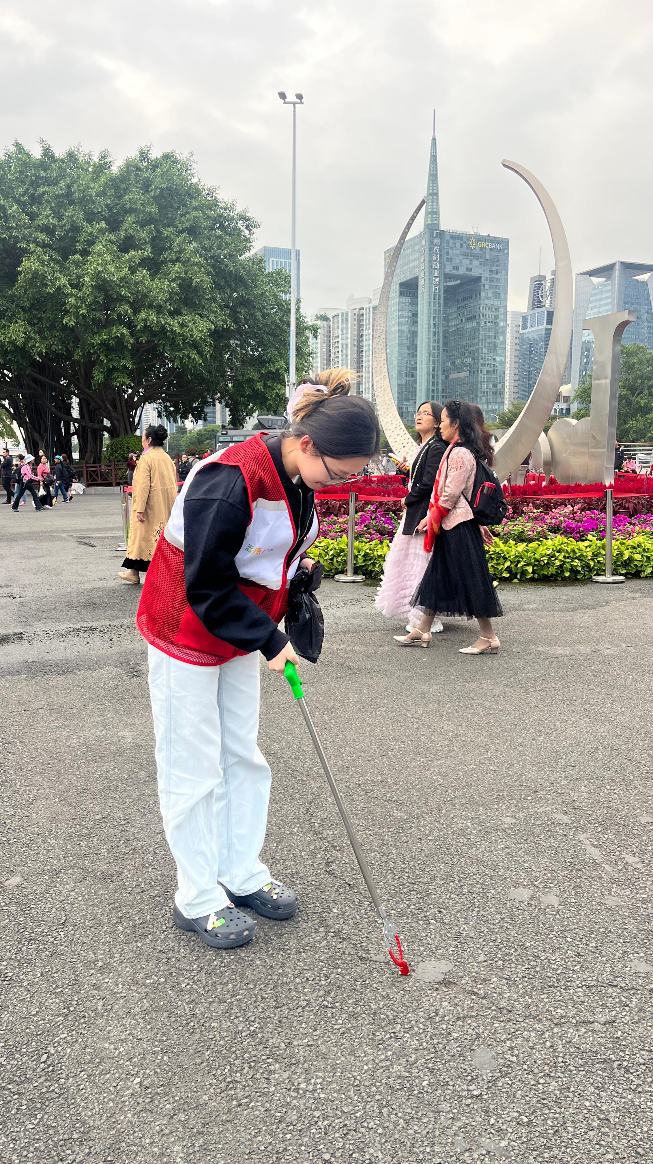 无论是全运会广迎四海宾朋,还是创建5A景区,亦或是正在如火如荼开展的广州国际灯光节,对环境卫生与服务品质都是极致的考验。志愿服务队深知任务艰巨、责任重大,他们化身为“环境卫士”和“保洁工匠”,主动承担起最艰苦的“死角清零”任务。他们的服务,细致到了广州塔广场、花城广场和海心沙等景区的每一个“神经末梢”,下足“绣花功夫”。队员们将大量的精力投入到了不显眼、难清理的“边角地带”,他们手持垃圾夹和环保袋,深入绿化带深处,蹲下身检查灌木丛底部,仔细清理步道砖缝……任何一个烟头、一片纸屑、一个包装袋都逃不过他们的“火眼金睛”。