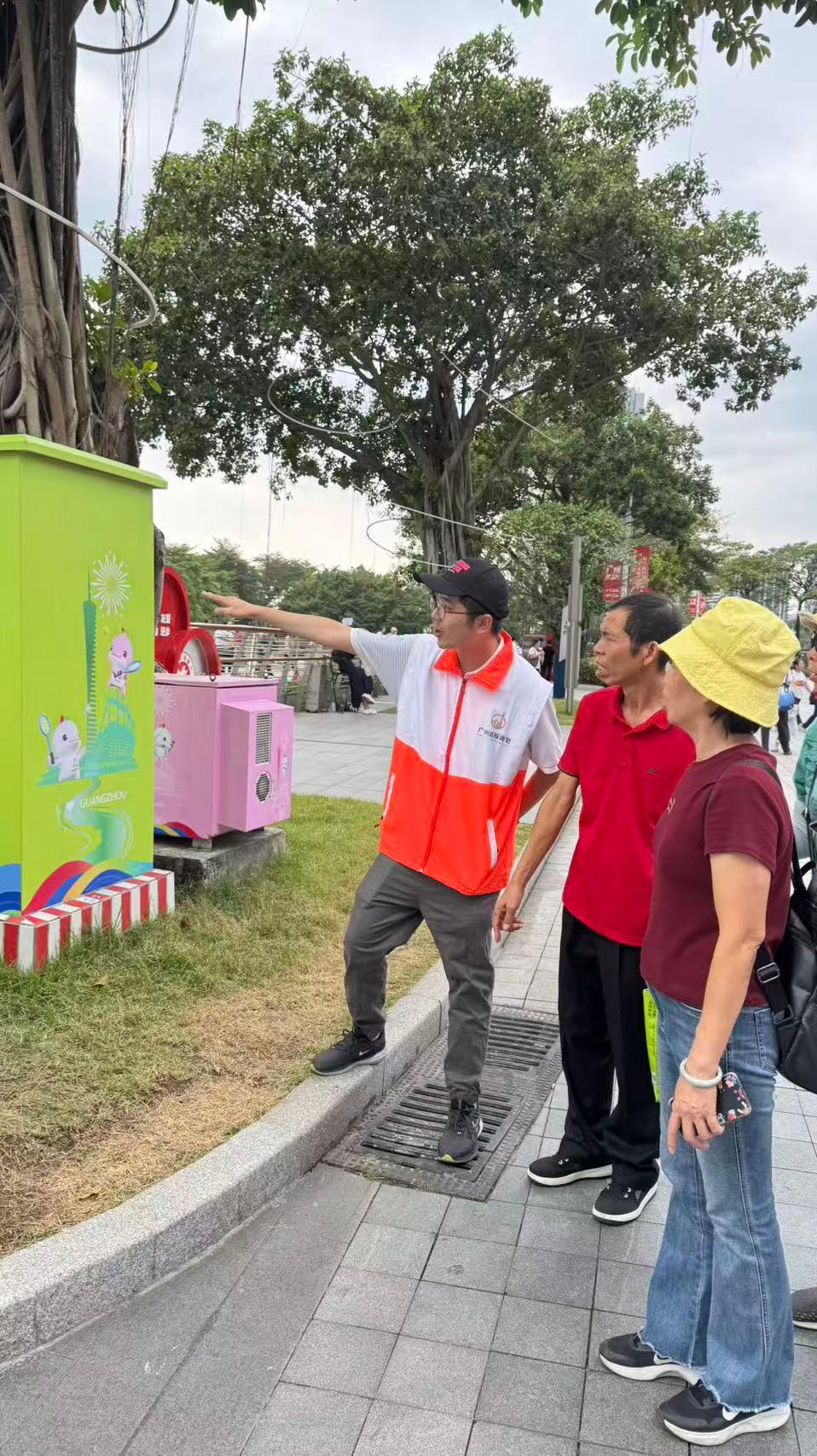 除了提供问询服务,志愿者们还肩负起了引导游客合理分流、确保交通畅通、配合相关部门处理突发情况的任务,与安保人员及工作人员紧密配合,确保每位游客都能在安全、井然有序的环境中沉浸式享受“魅力新广州”。他们也会化身文明引导员,耐心劝阻游客吸烟、乱扔垃圾等不文明行为,并主动解答游客关于全运会、景点历史、文化内涵的各类问题,将文明引导与文化传播有机结合,让“5A标准”内化于一举一动。队员们纷纷表示,“服务无止境,我们要让每一位游客都感受到广州的温度,感受到广州地标性景区人文服务的脉脉温情”。